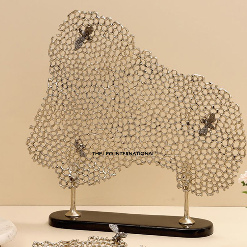 Maison Designer Fantaisie Sculpture Statue Argent Couleur Ginkgo Forme Aluminium Moulé Avec Noir Couleur Base Décor Accent