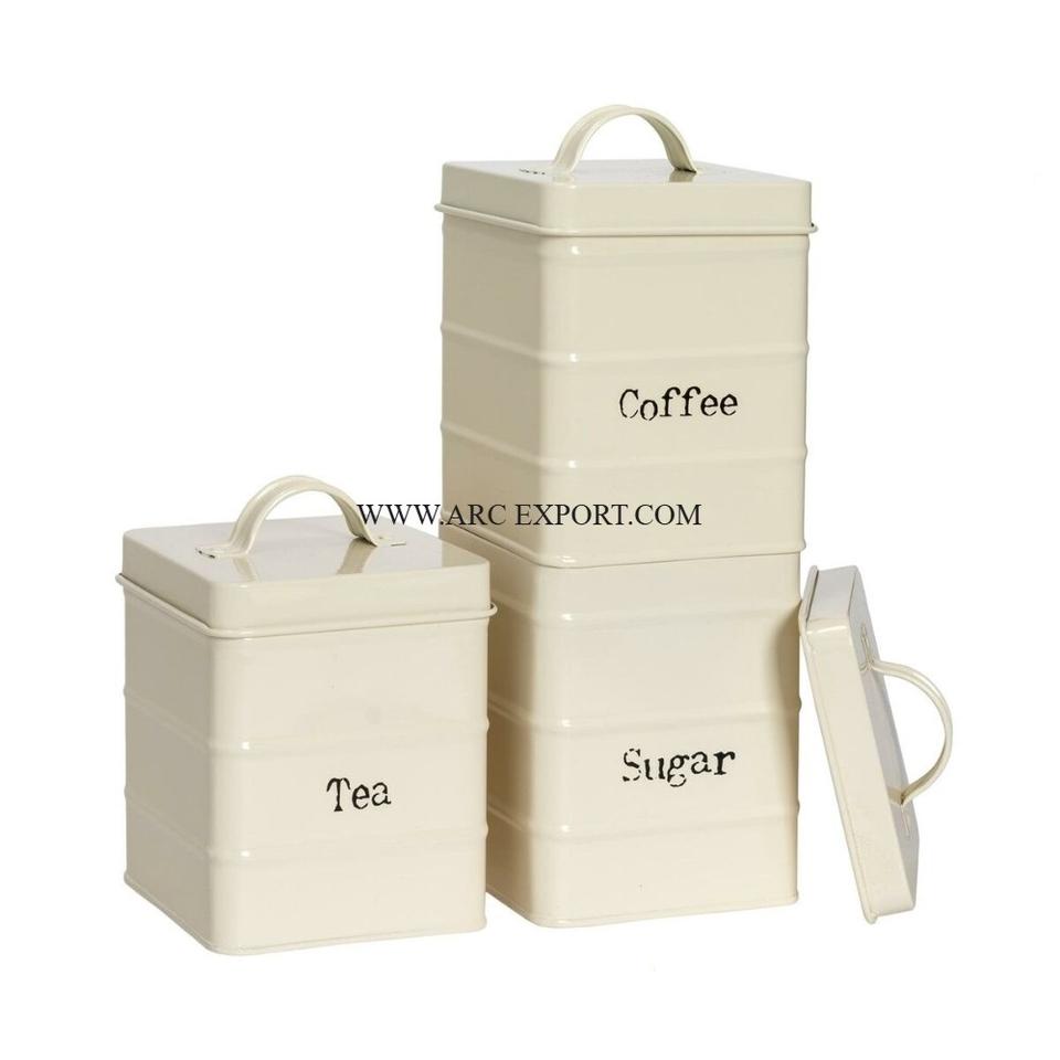 Ensemble de 4 boîtes de rangement pour table à manger pour la maison, forme et taille personnalisées, métal de couleur blanche, pots de cuisine uniques en étain, prix le moins cher