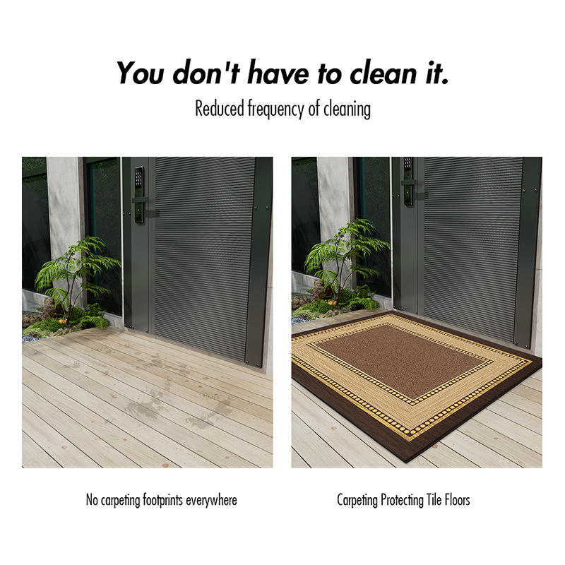 Paillasson d'entrée rectangulaire antidérapant résistant aux taches pour intérieur, en fibre de polyester, motif géométrique, couleur unie