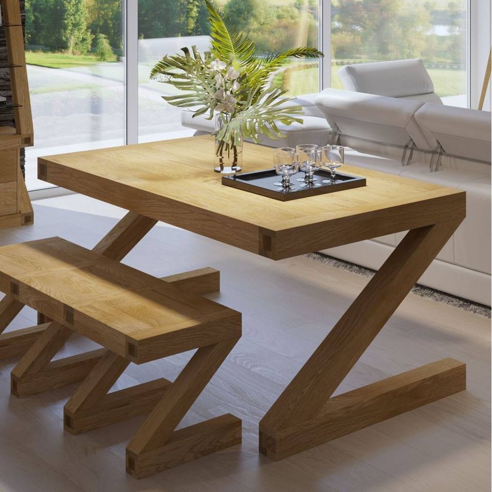 Meubles de maison Table à manger en chêne massif de haute qualité Table Unique en forme de Z pour salle à manger usine Vietnam standard d'exportation