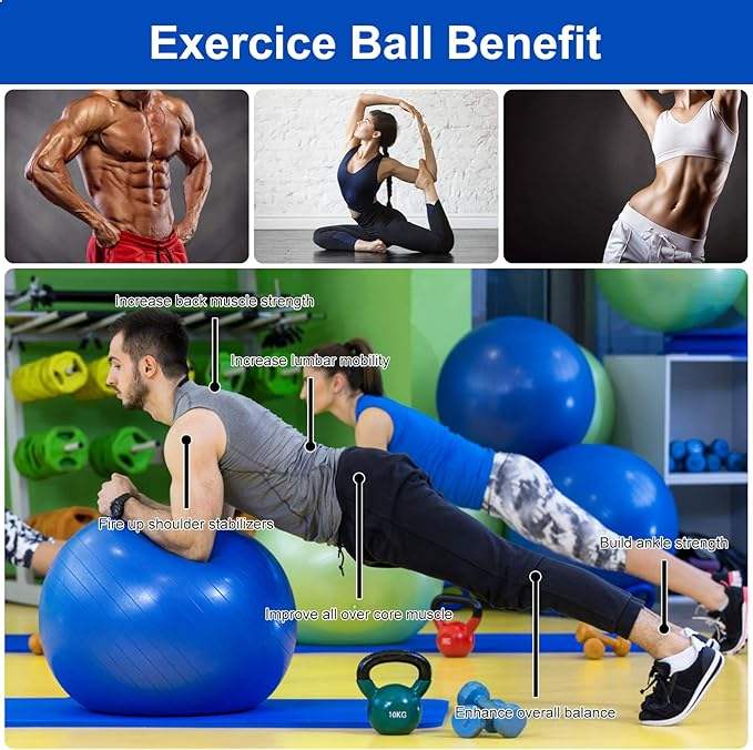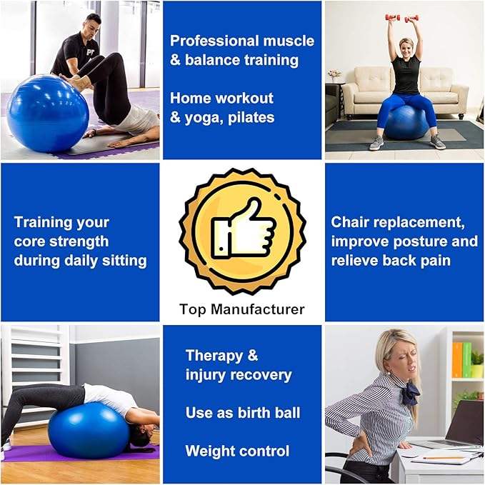 Équipement de gymnastique à domicile PVC et plastique gonflable 65 cm Anti-Explosion Gymnastique Massage Yoga Ball pour l'exercice équilibre formation