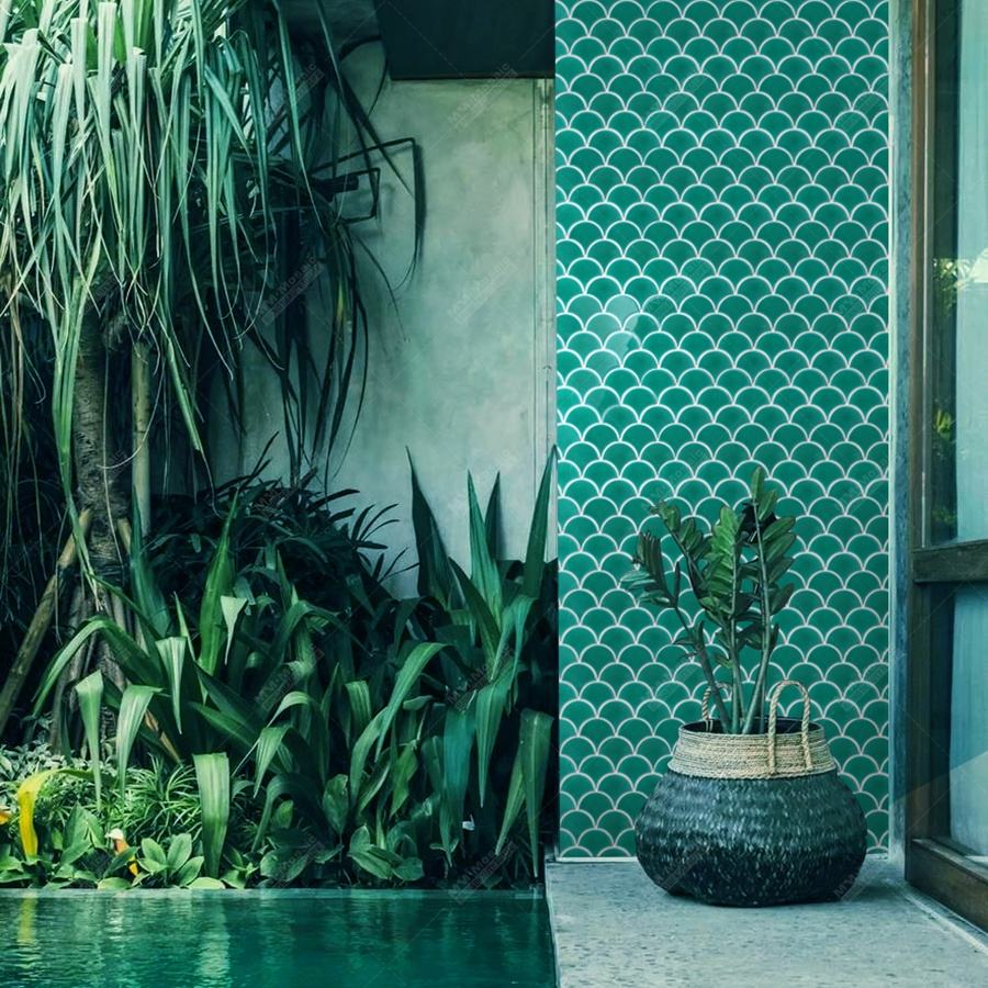 Tuile murale en mosaïque de porcelaine craquelée vert turquoise en forme d'éventail pour l'amélioration de l'habitat