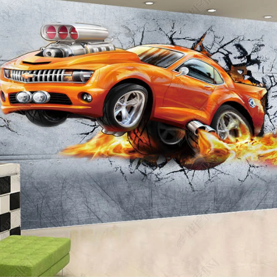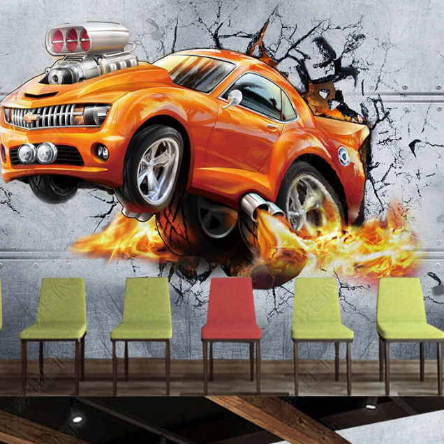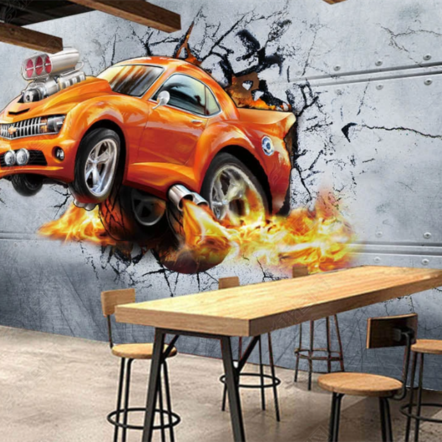 Intérieur de la maison voiture rétro étanche 3D papier peint arrière-plan du salon