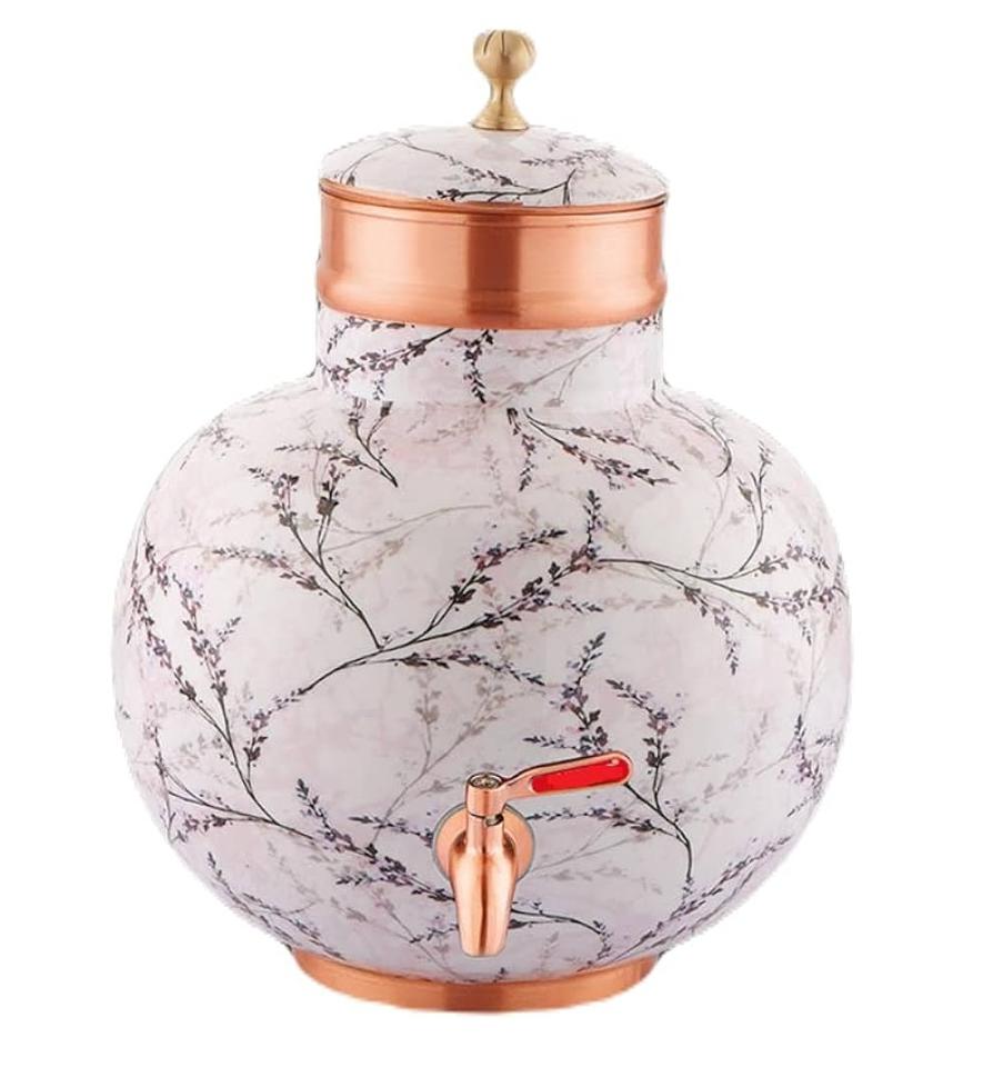 Pot d'eau en cuivre à imprimé floral pour la cuisine à domicile fabriqué en Inde 100% pot d'eau en cuivre pur pour grossiste et fournisseur fabriqué en Inde