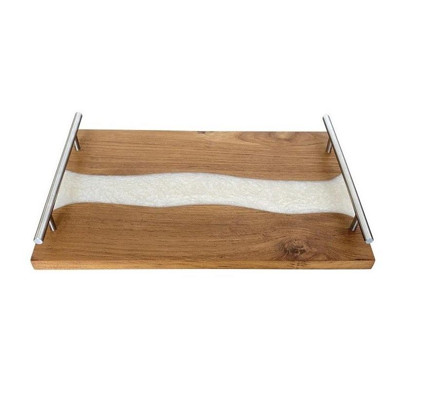 Plateau de service pour la cuisine et la maison, en vente, plateau de service pour le petit-déjeuner pour hôtel et restaurant, plateau de haute qualité en bois d'acacia et résine