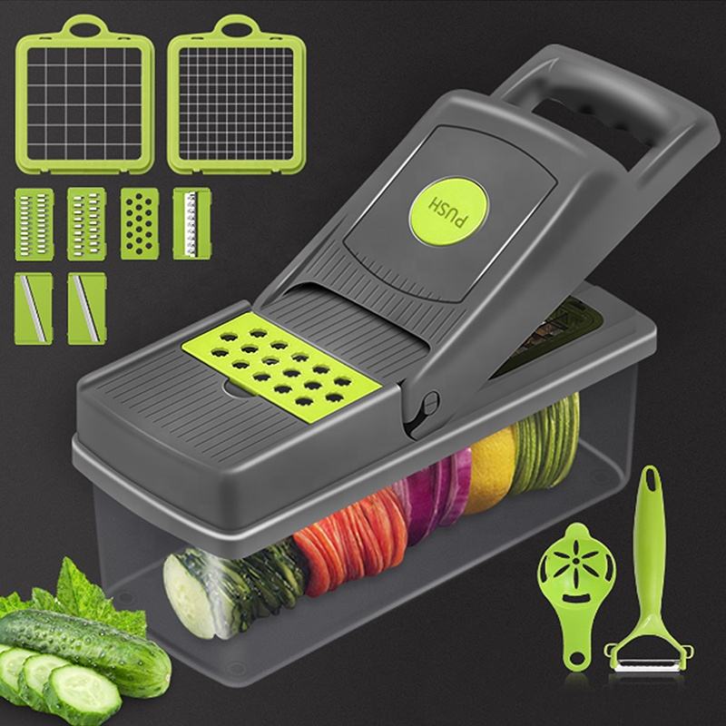 Nouvelle mandoline manuelle multifonctionnelle 16 en 1 pour la cuisine à domicile Nouveau hachoir à légumes avec récipient