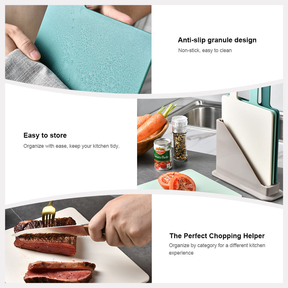 Ensemble de planches à découper antidérapantes en PP pour la cuisine, 4 pièces, planches à découper classifiées pour aliments pour bébés et fruits, avec support de rangement