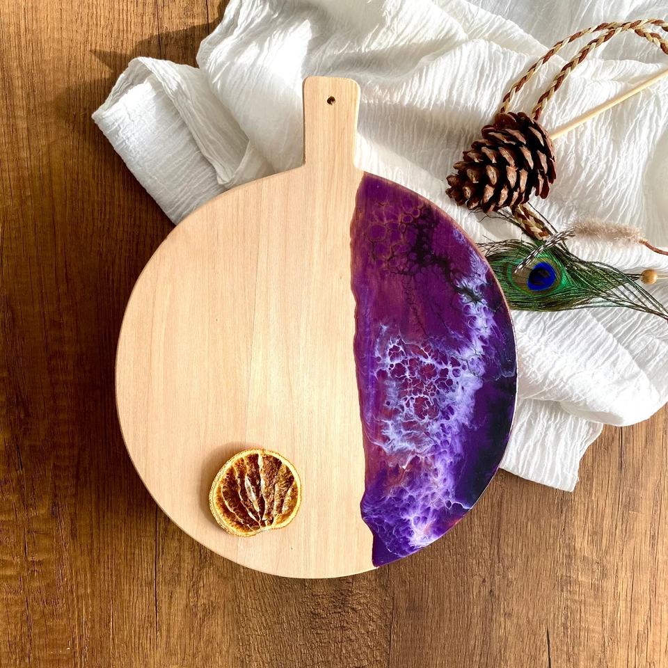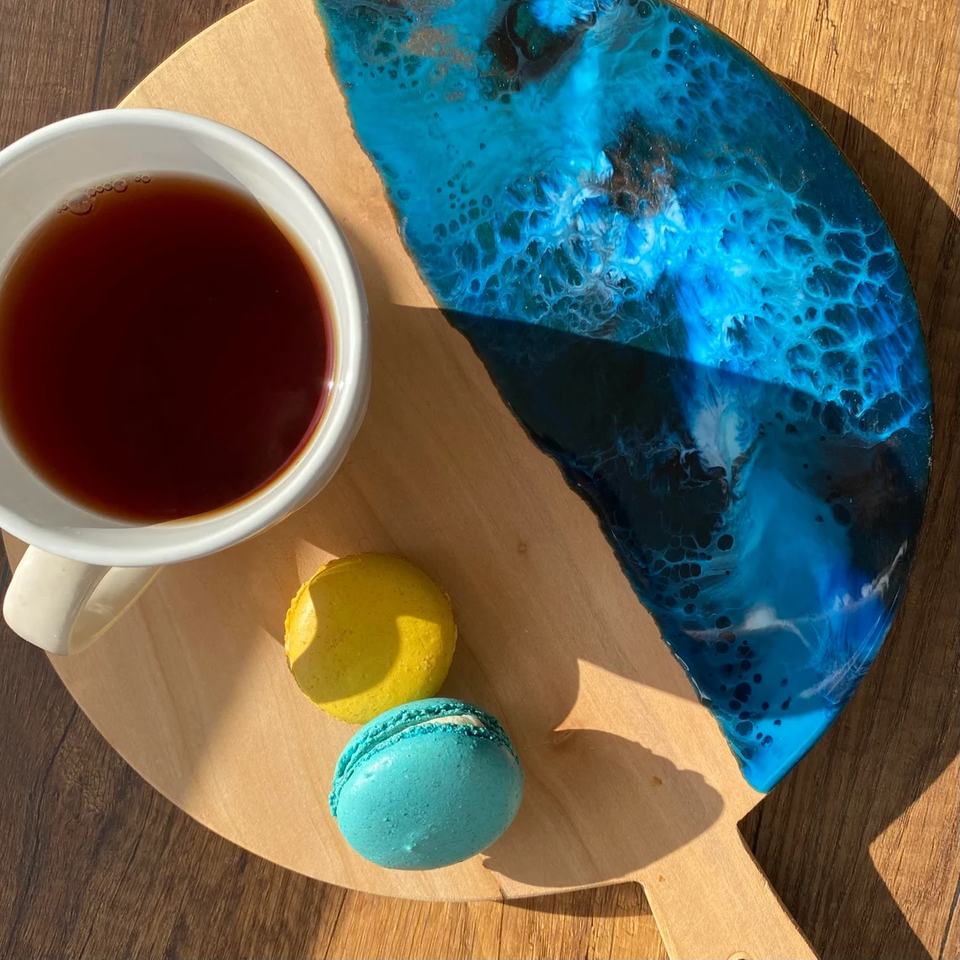 Plateau de service antidérapant rond en résine de bois d'olive pour la cuisine à domicile et le restaurant pour les collations au thé et au café