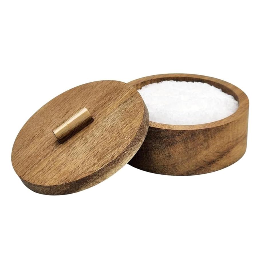 Home Kitchen Salt Bowl Cellar Pepper Spice Wood Box Round Shape High on Demanding for Counter Sugar Salt Spice Bowl At Low Price
