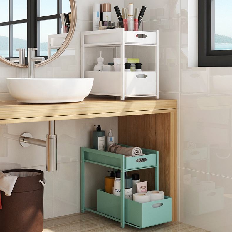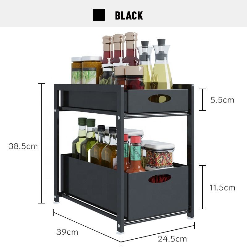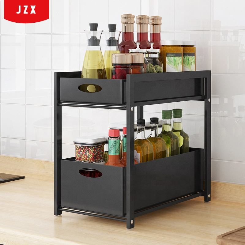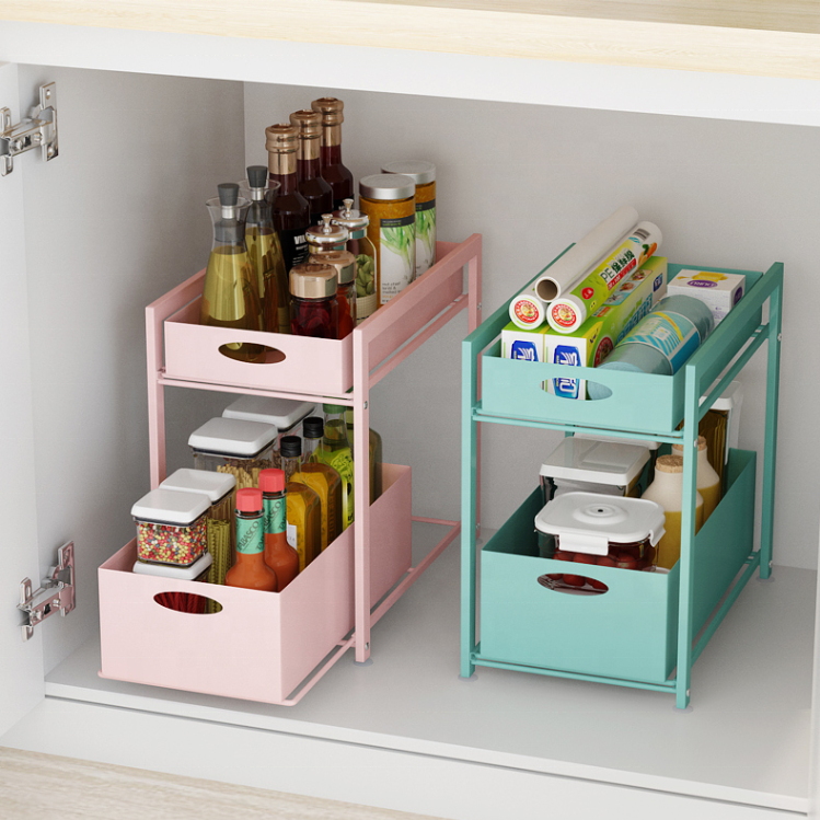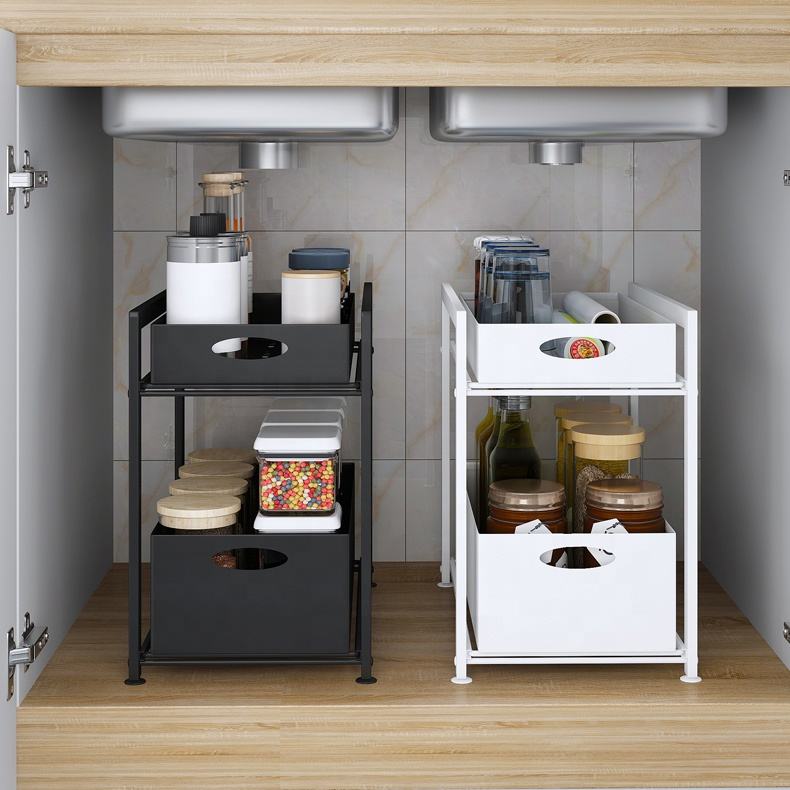 Étagères de cuisine domestique, support de rangement sous évier, extensible à 2 niveaux, organisateur multifonctionnel, Type tiroir en métal, 1 pièce