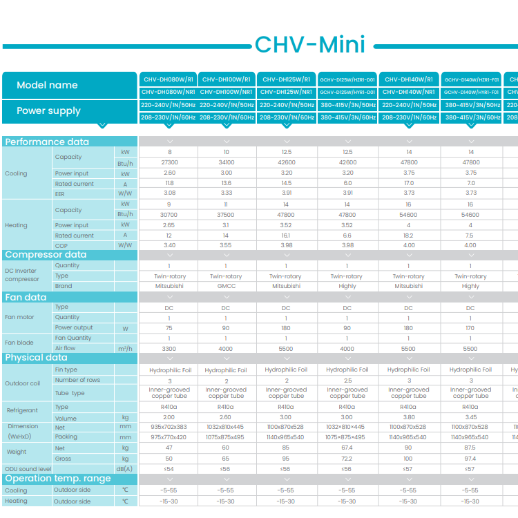 Capacité de refroidissement:3HP/8KW/27300Btu