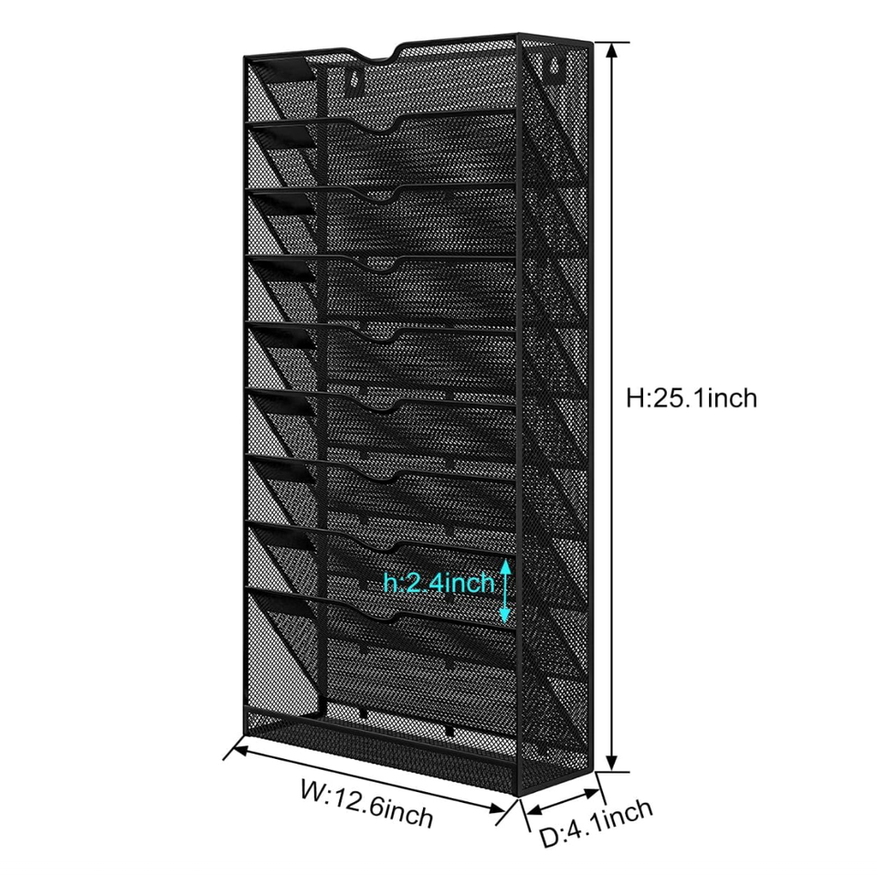 Porte-classeur mural vertical à 10 niveaux pour bureau à domicile avec plateau plat pour papiers, dossiers, magazines