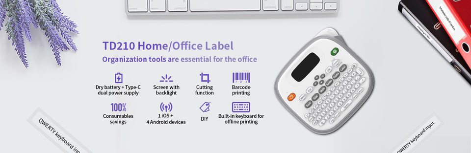 Imprimante d'étiquettes mobile pour bureau à domicile TD210, imprimante thermique sans encre, imprimante portable pour autocollants