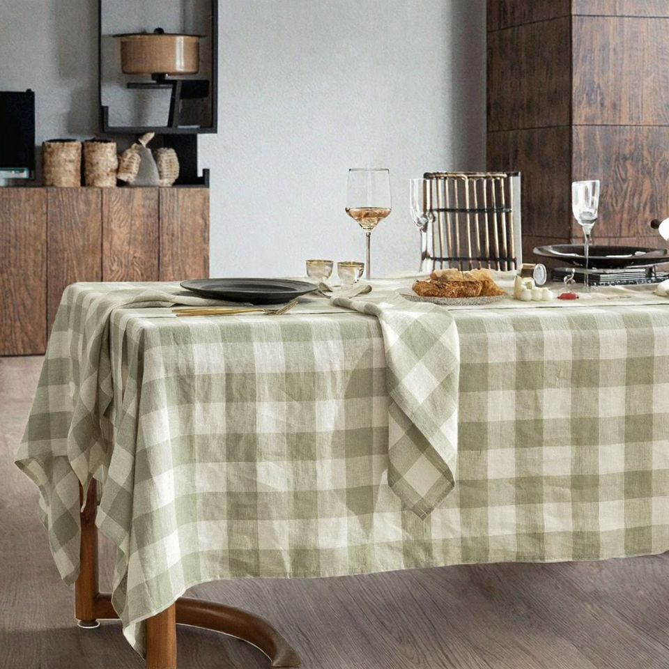 Nappe Moderne pour la Maison et l'Extérieur, Imprimée en Rouge, Vert et Blanc, en Polyester/Coton Tissé, Lavable et Durable