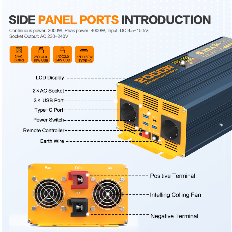 Système Énergétique Solaire Domestique Onduleur de Puissance Automobile à Onde Sinusoïdale Pure 12V vers 110V 220V 4000W 5000W