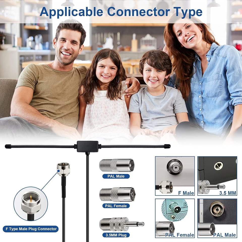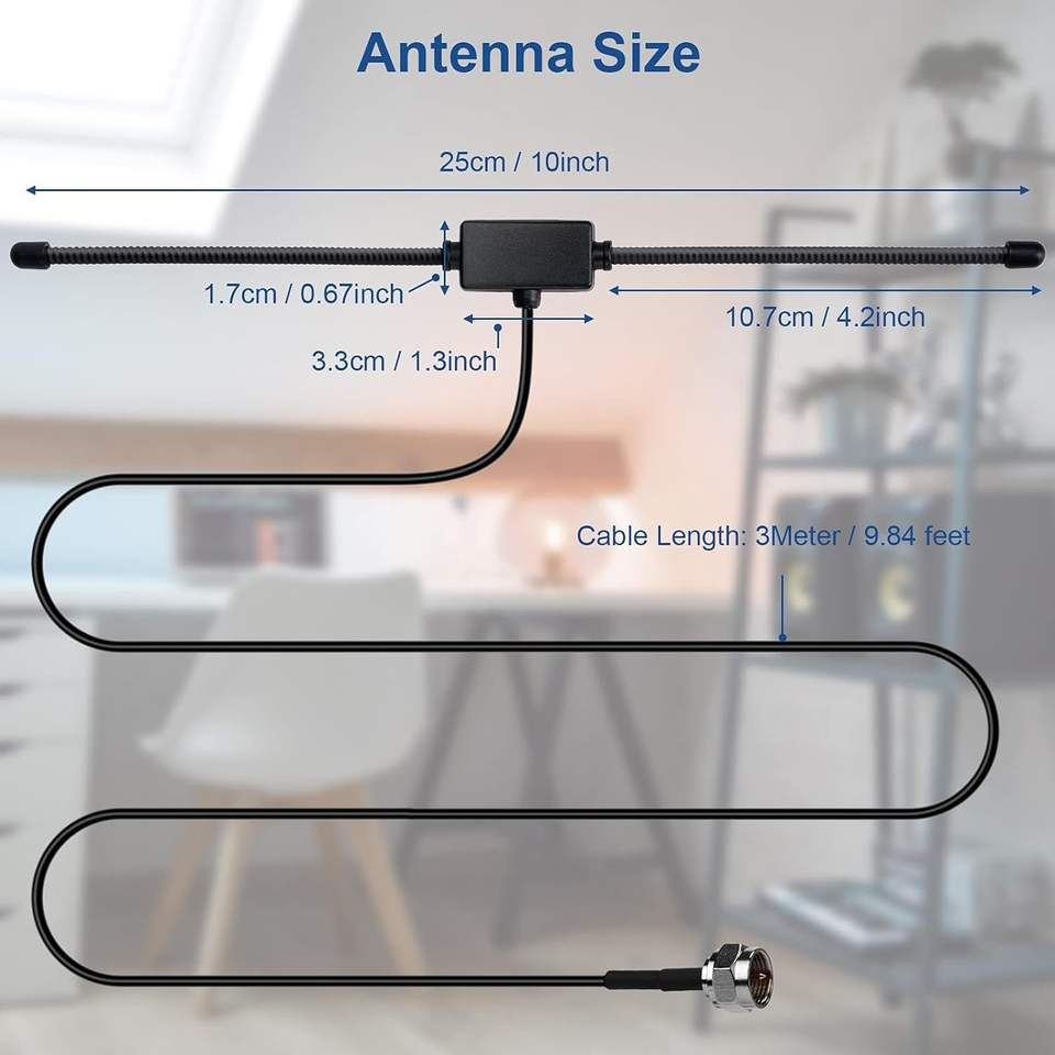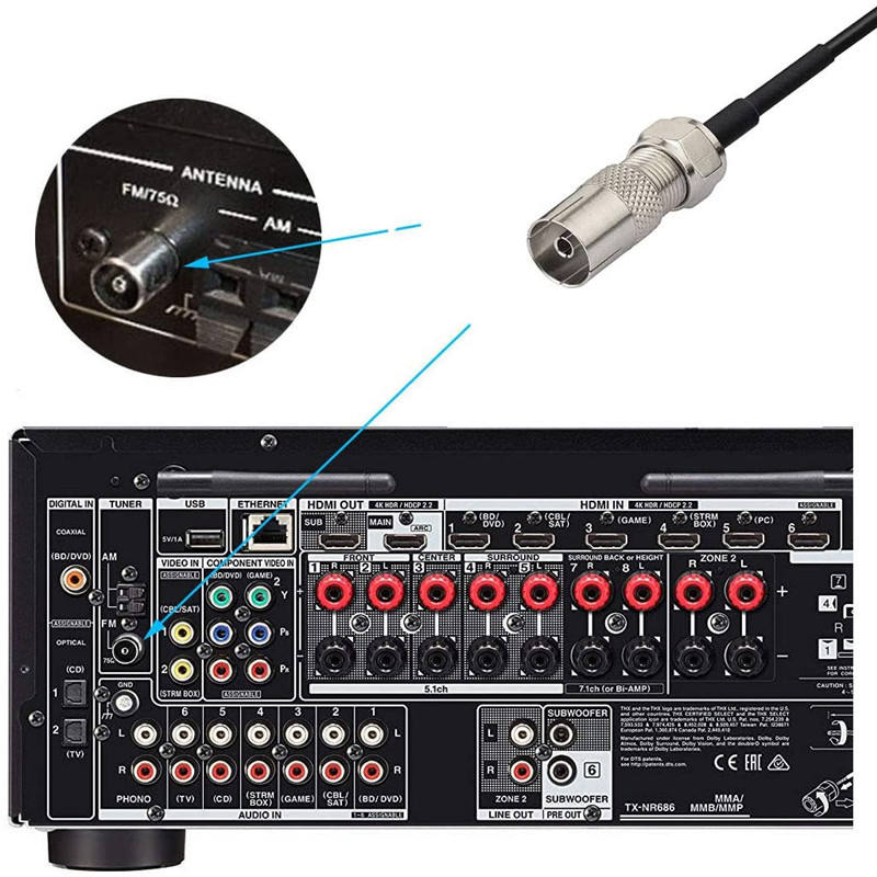 Récepteur de système de musique stéréo domestique avec antenne radio FM intérieure, connecteur SMA, longueur de câble de 3 m ou 5 m, antenne TV