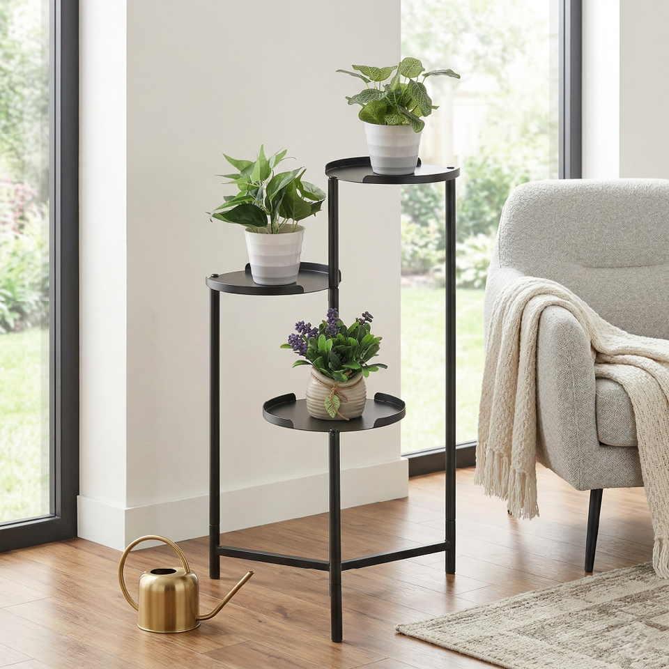 Support de plantes en métal à 3 niveaux pour balcon, avec revêtement en poudre, étagère fonctionnelle en acier pour pots de fleurs, rangement domestique
