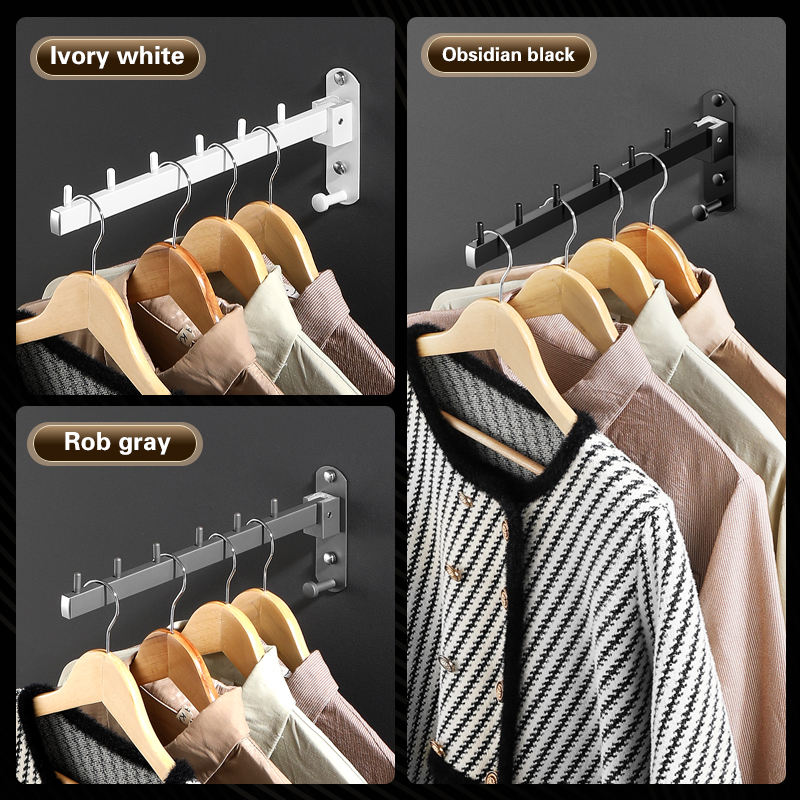 Porte-vêtements mural rétractable et pliable en acier inoxydable pour l'organisation domestique, gain de place, pour vêtements, manteaux et accessoires