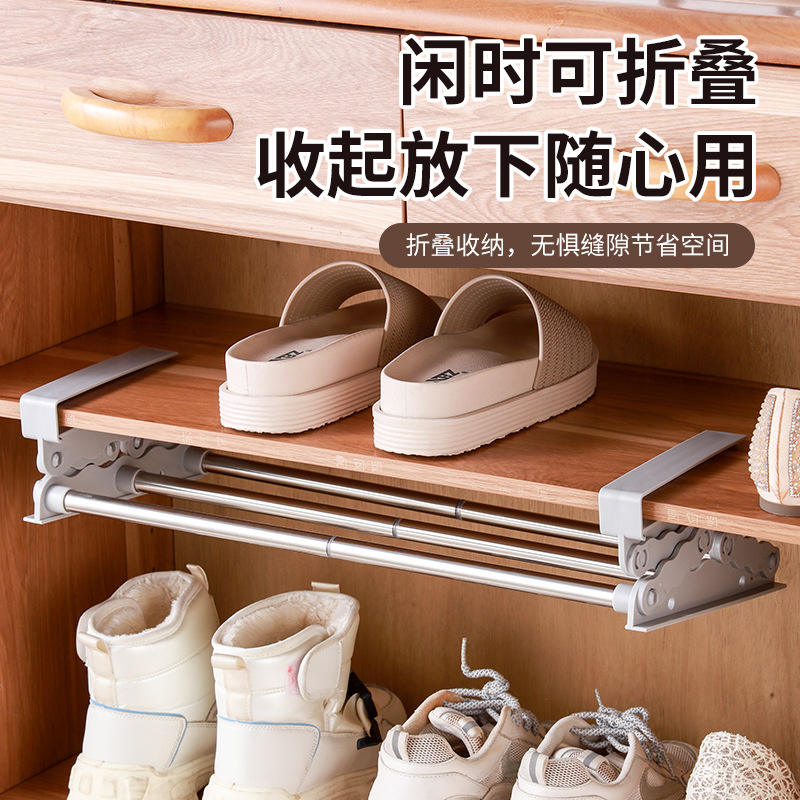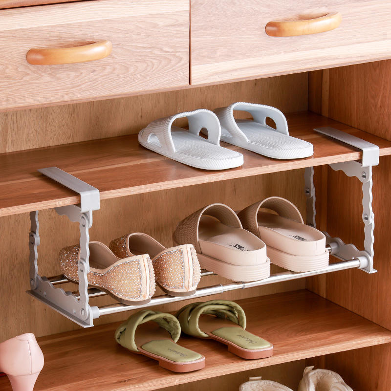 Étagère de rangement domestique avec étagère extensible, organisateur de chaussures peu encombrant, design rectangulaire à crochets pour un rangement bien organisé dans le placard