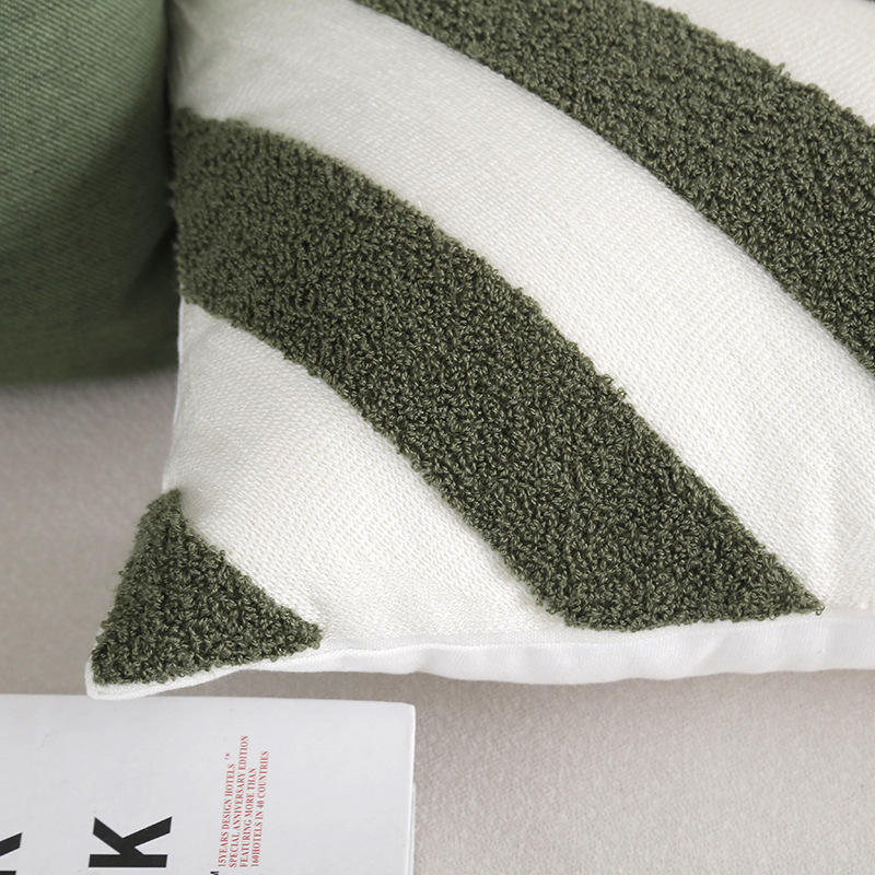 Housse de coussin rayée en polyester et coton 45x45cm, brodée, pour canapé, chambre, bureau