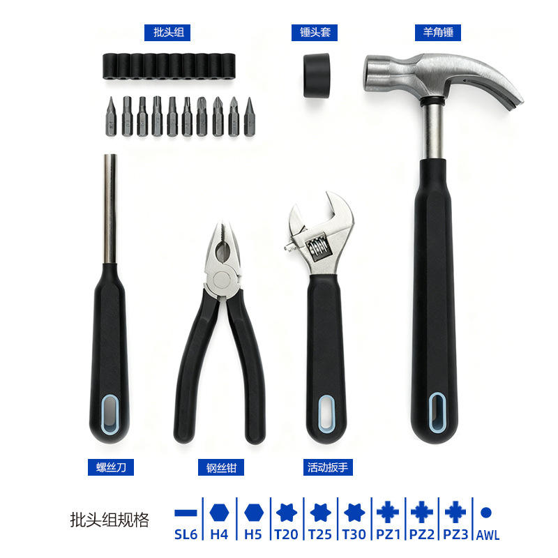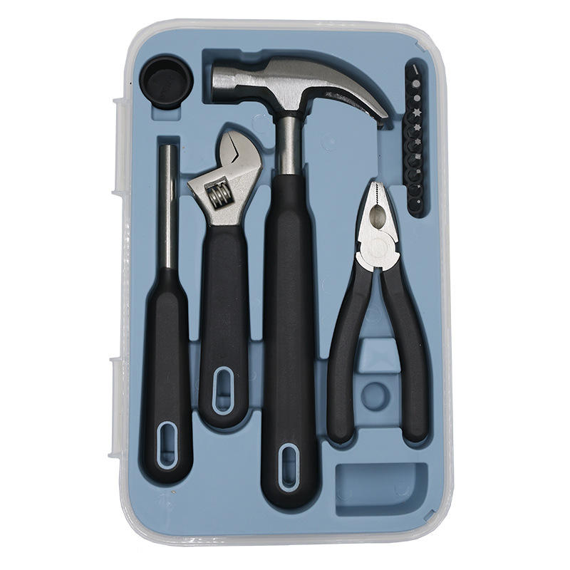 Kit d'outils pour la maison, 15 pièces, manche en caoutchouc, ensemble de réparation multifonctionnel pour usage domestique