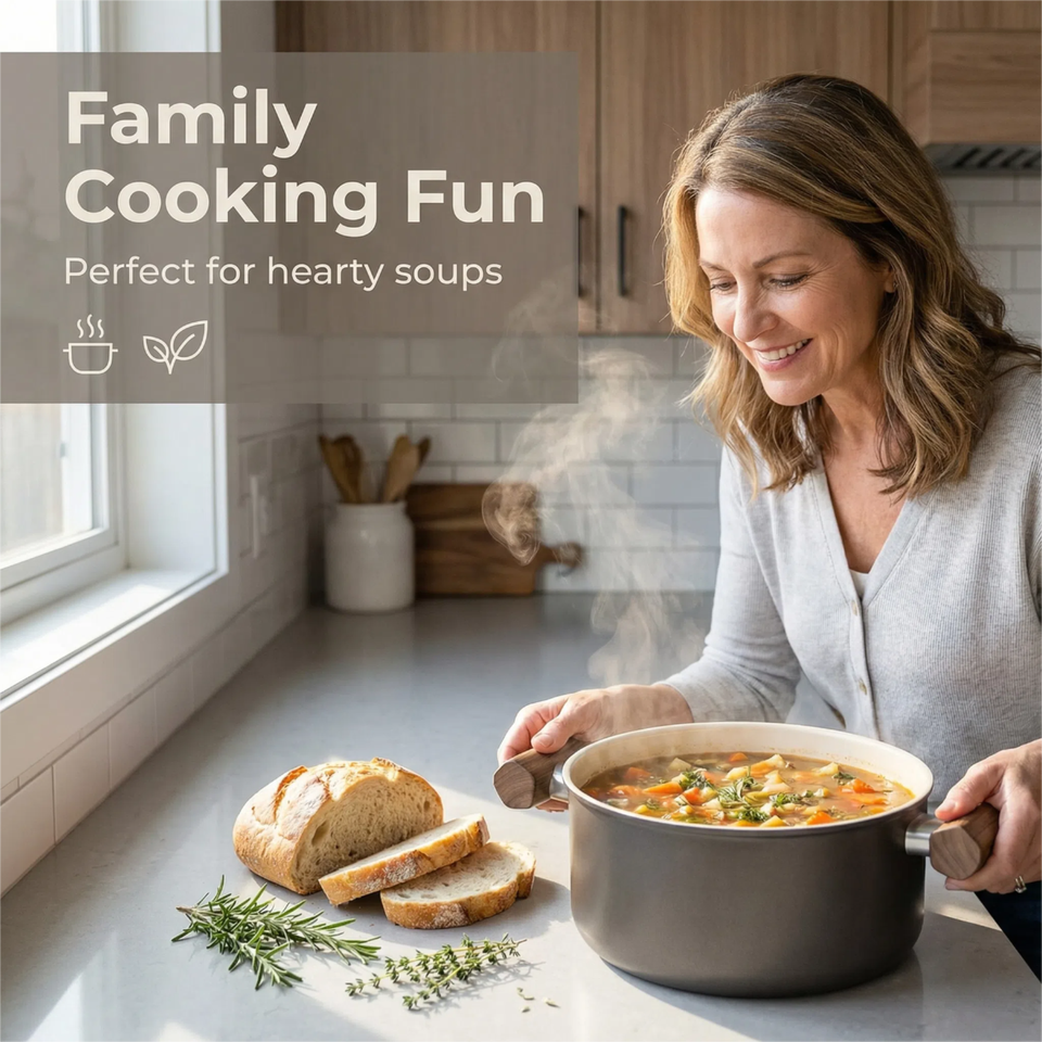 Casserole Ronde en Acier Carbone Grande Capacité 28 cm pour Usage Domestique, avec Double Anse, Idéale pour Soupes et Plats Variés