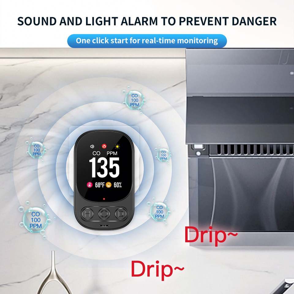 Moniteur de CO à usage domestique avec triple fonction : détection de CO, mesure climatique, haut-parleur