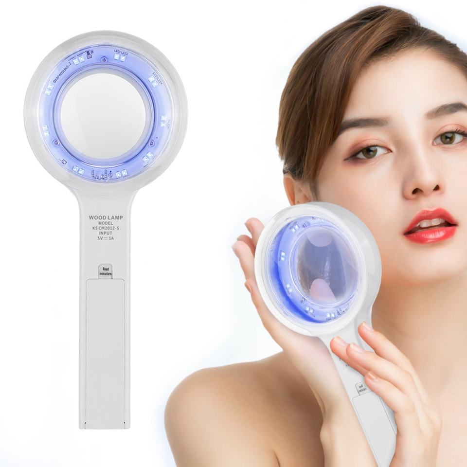 Analyseur de peau en bois pour usage domestique, portable, rechargeable, avec lumière UV, détecteur de test cutané du visage