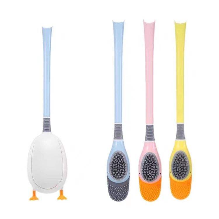Ensemble de brosse de toilette en silicone pour canard de plongée jaune à usage domestique outil de nettoyage magique à suspendre au mur sans matière plastique à angle mort
