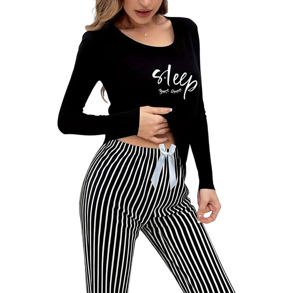 Ensemble pyjama pour femme, haut en t-shirt noir uni tendance pour la maison, taille élastique, été, respirant, 100% polyester, décontracté