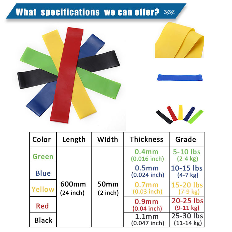 Nom du produit:Bande de hanche Tpe d'exercice avec logo de résistance de bureau