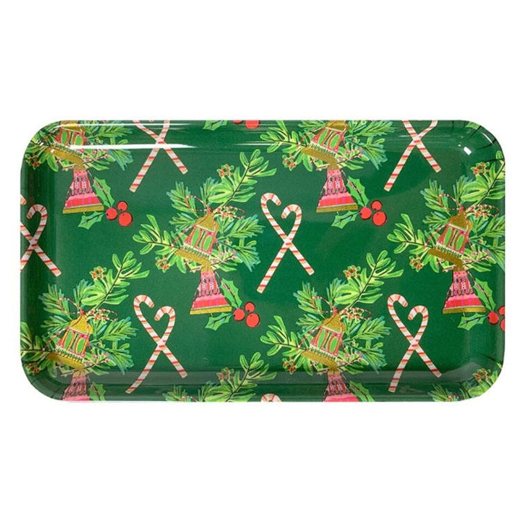 Home decoration Serveware Small Melamine Candy Canes Tray In Green