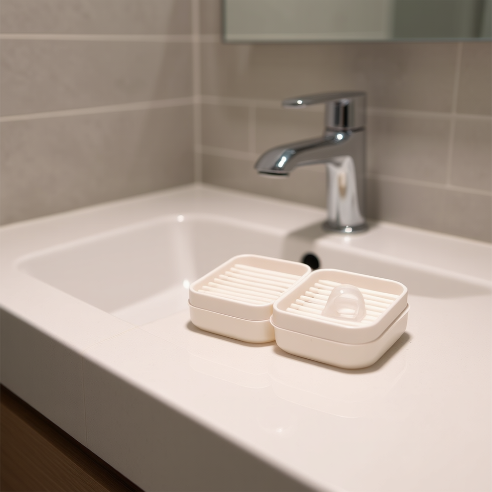 Boîte à savon double couche Homeera L10.7xW8.6xH15.3cm en plastique rectangulaire minimaliste pour lavabo de salle de bain
