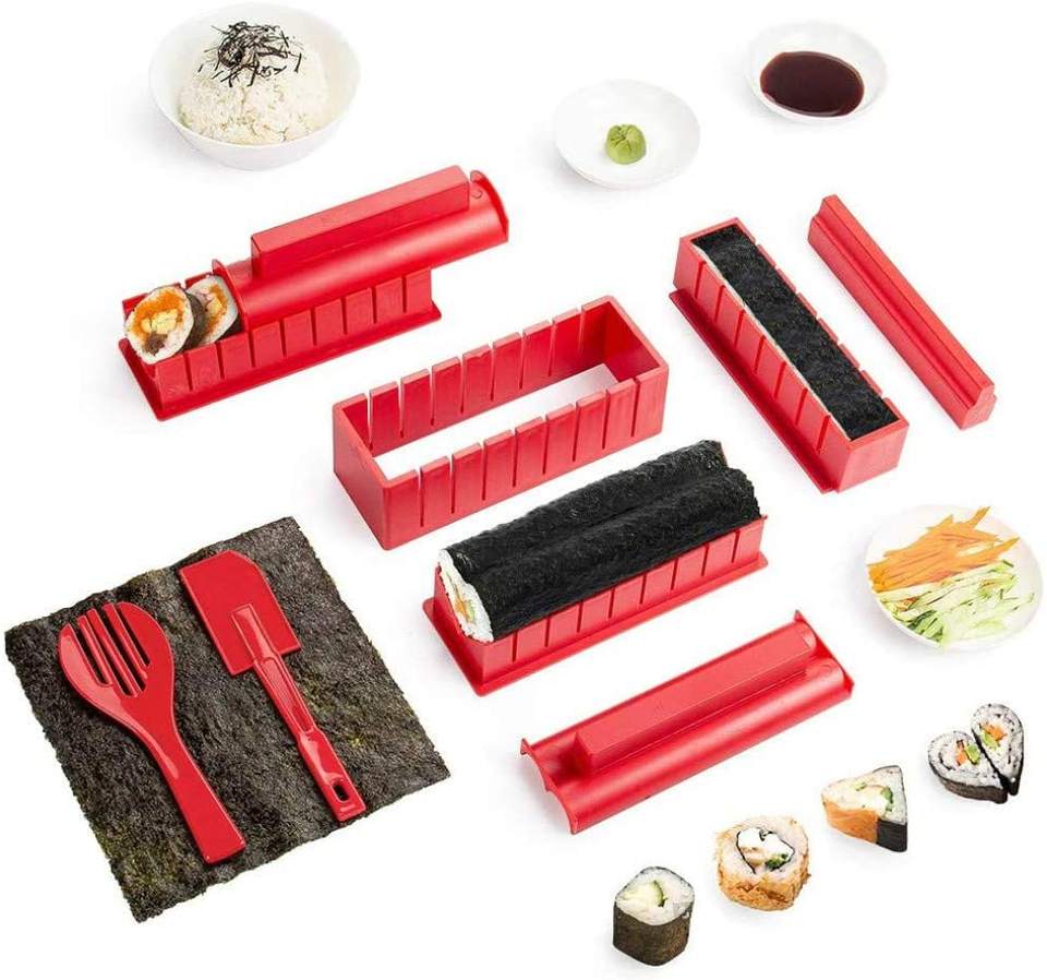 Sushi en plastique fait maison, fabricant de Sushi professionnel rouleau bricolage 10 pièces facile à nettoyer fourchette à riz rouge