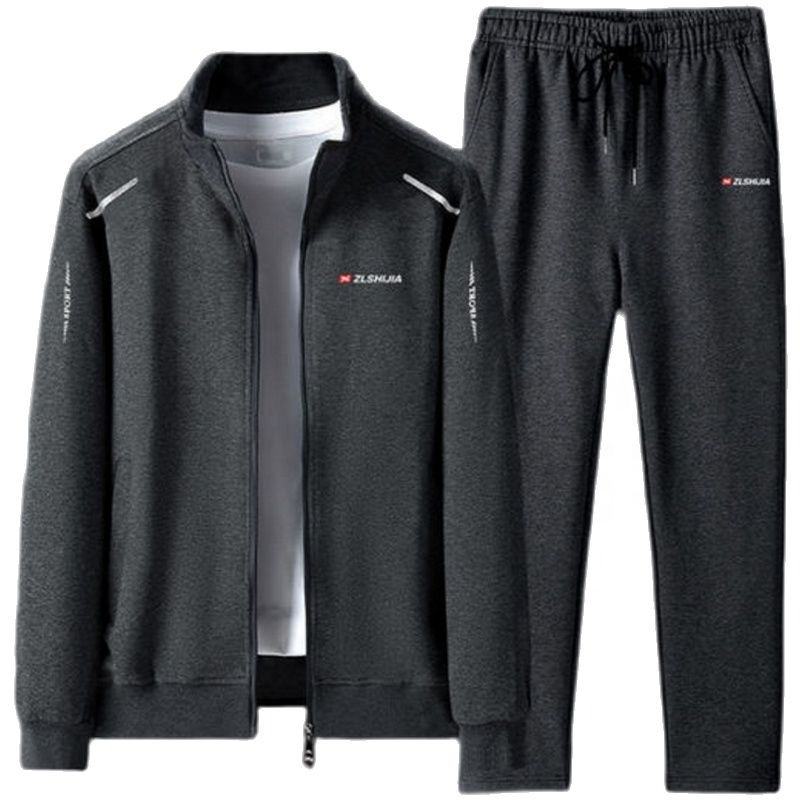 Full Zipper Tracksuit With Zip Pockets Gym Training Wear Men Winter Slim Fit Training Set Overall Print Men Two Piece Sets