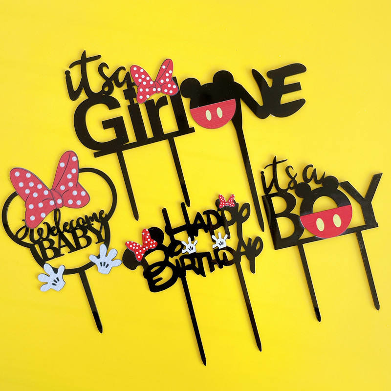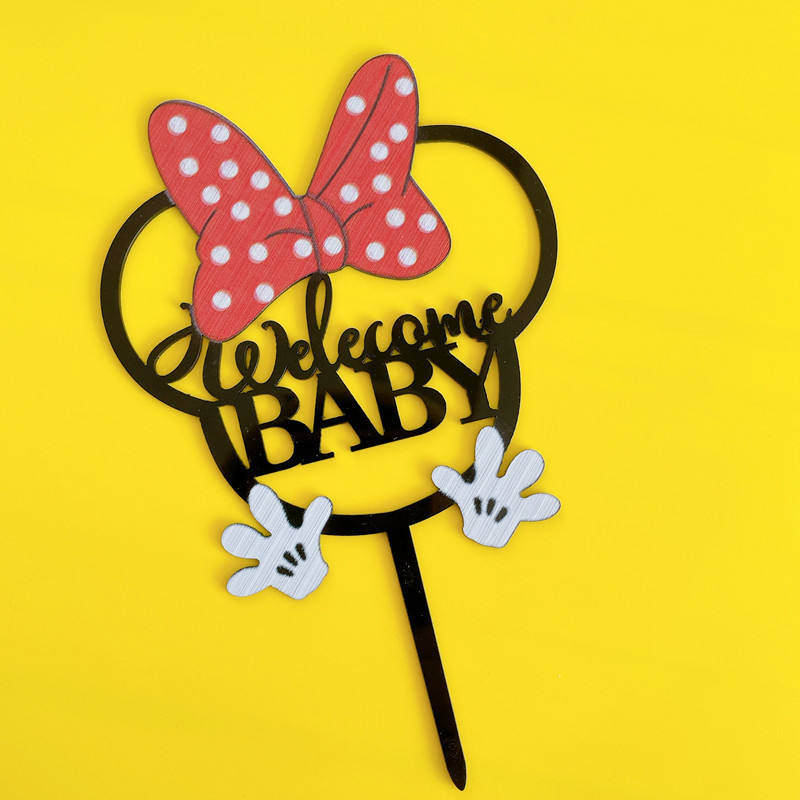 Décoration de gâteau en acrylique « Miel et Douceur » pour garçon ou fille, « Bienvenue Bébé », Joyeux Anniversaire, avec un nœud, pour fête d'anniversaire