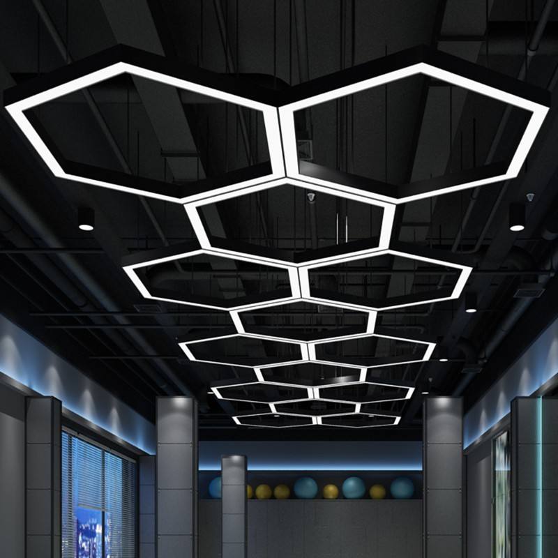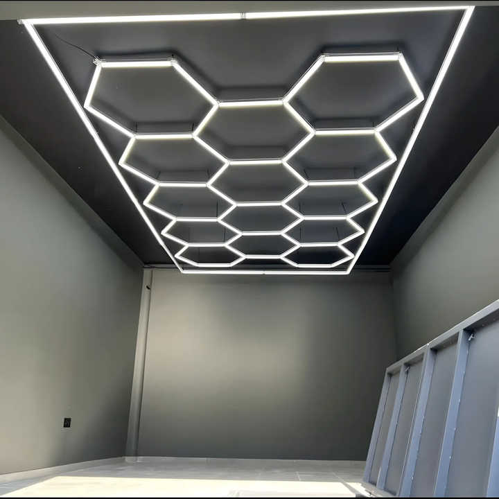 Lumières LED hexagonales en nid d'abeille pour garage, station de lavage de voiture, salon de coiffure, salle de sport, éclairage de travail automobile, lampe en nid d'abeille