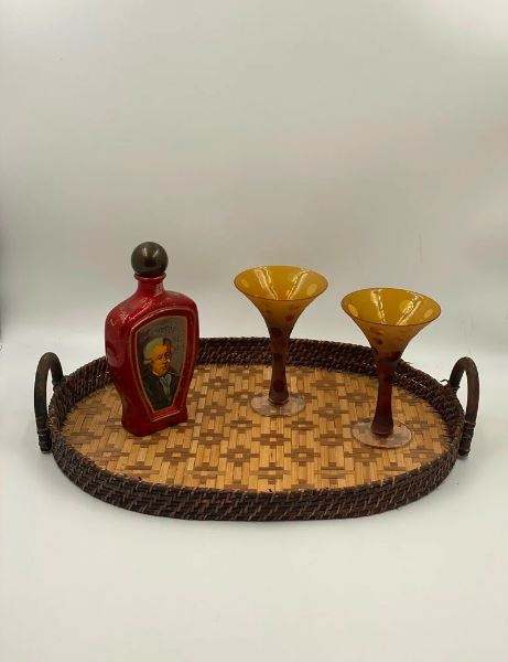 Plateau de service à café en rotin design en nid d'abeille de forme personnalisée avec une finition élégante, parfait pour les articles d'hôtel les plus vendus