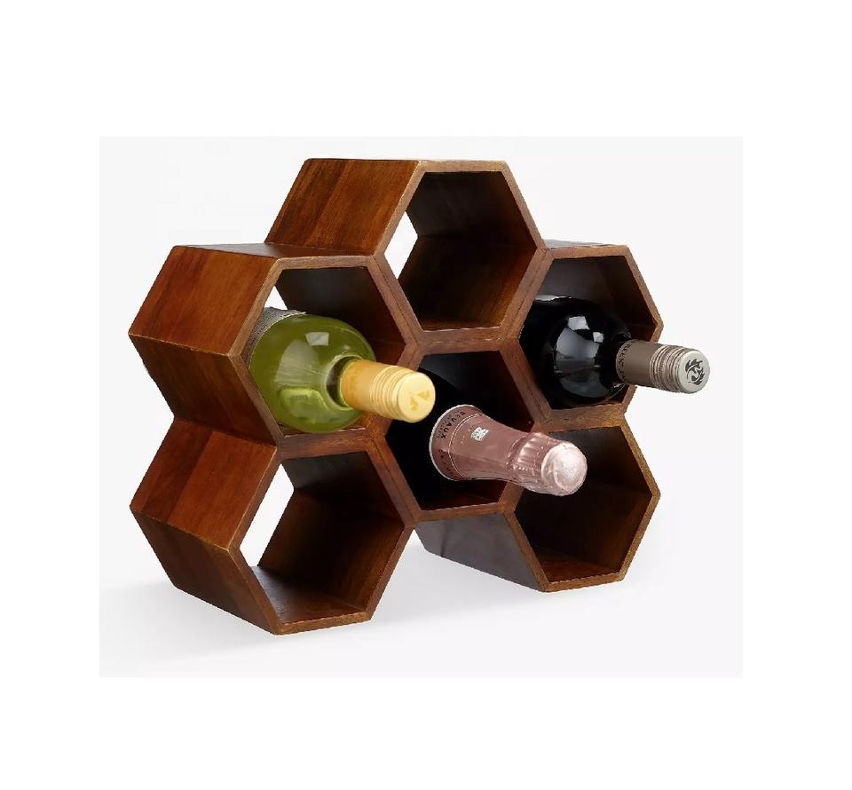 Casier à vin en bois de manguier nid d'abeille 6 bouteilles de couleur naturelle grossiste fabricant vente directe d'usine