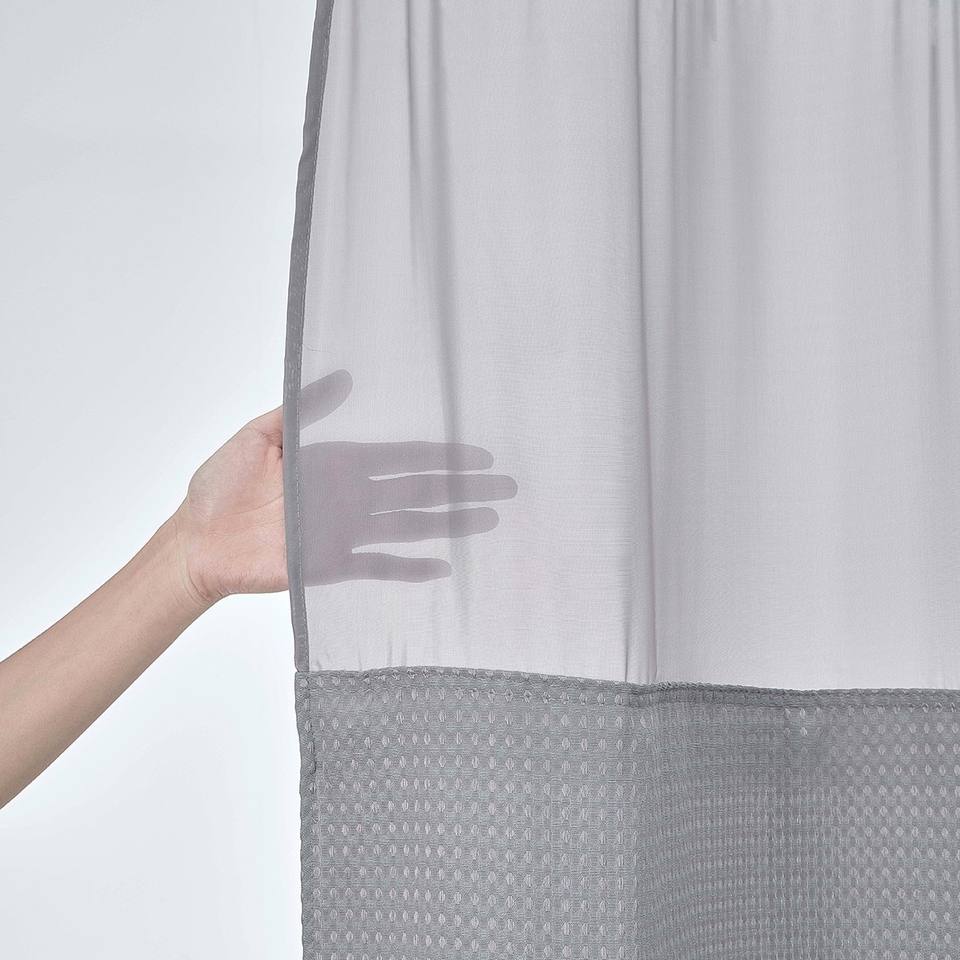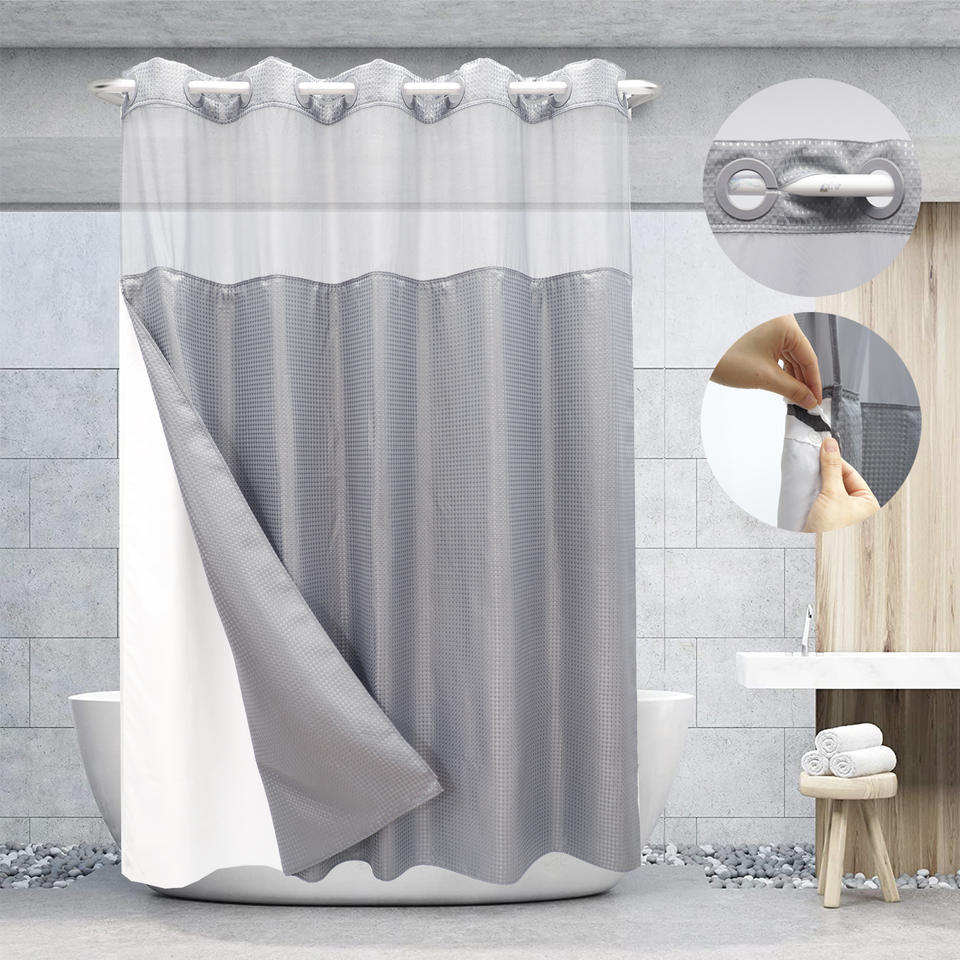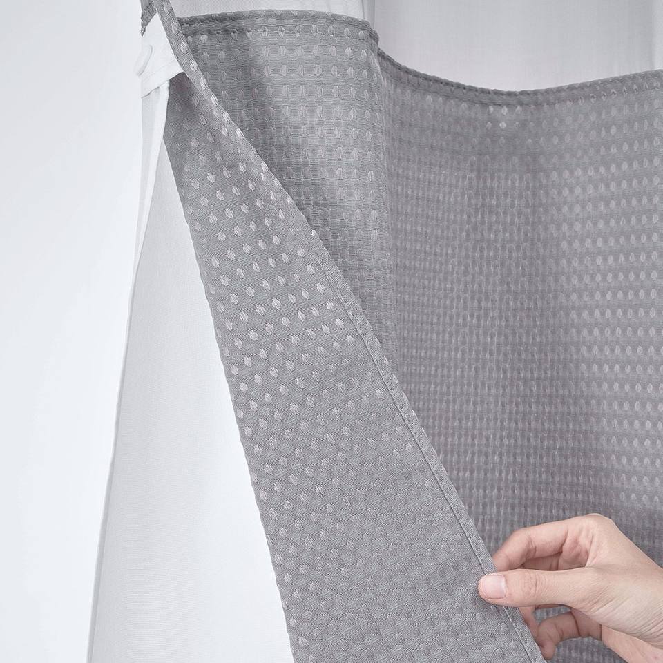 Rideau de douche à motif gaufré en nid d'abeille imperméable et translucide à double couche avec anneaux sans crochet