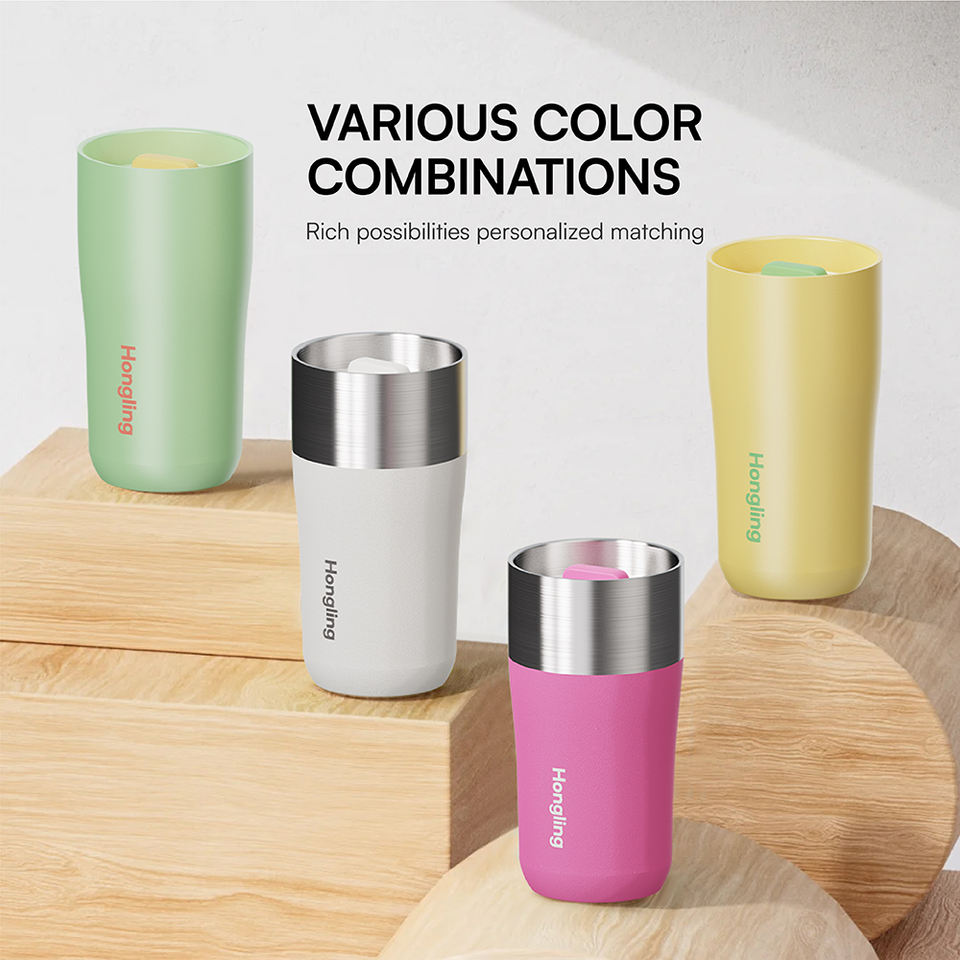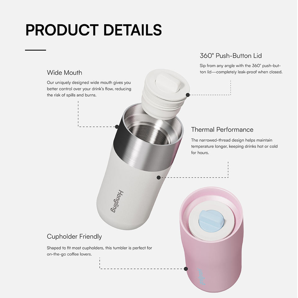 Gobelet isotherme en acier inoxydable à large ouverture Hong Ling sans BPA pour le travail en extérieur, mug à vide avec bouton poussoir, vente en gros