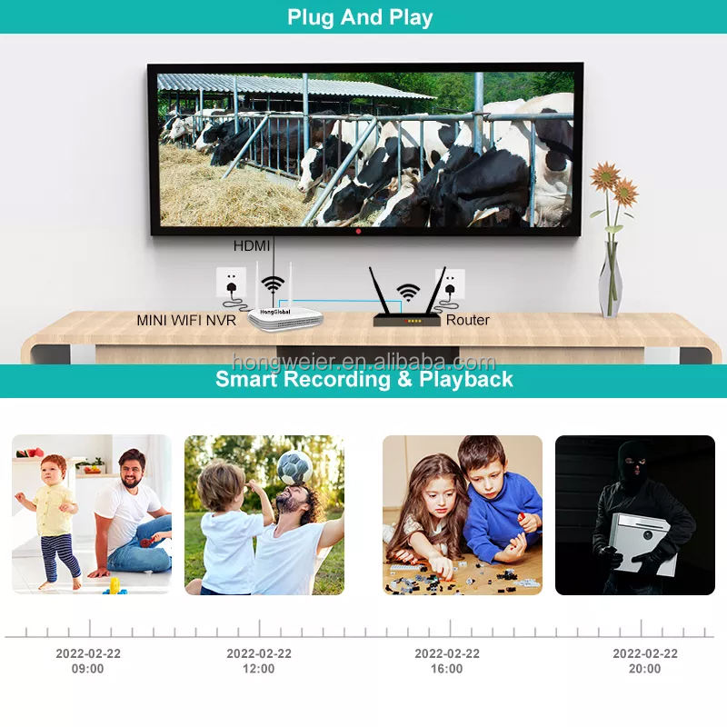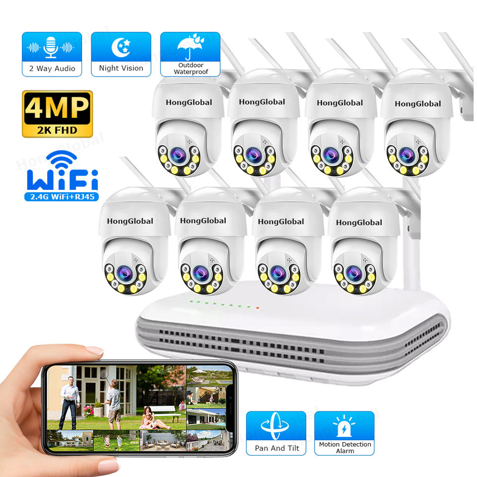 Système de caméra de surveillance CCTV IP PTZ NVR 4/6/8 canaux HongGlobal 3/4MP, système de caméra de sécurité domestique sans fil WiFi ICSee