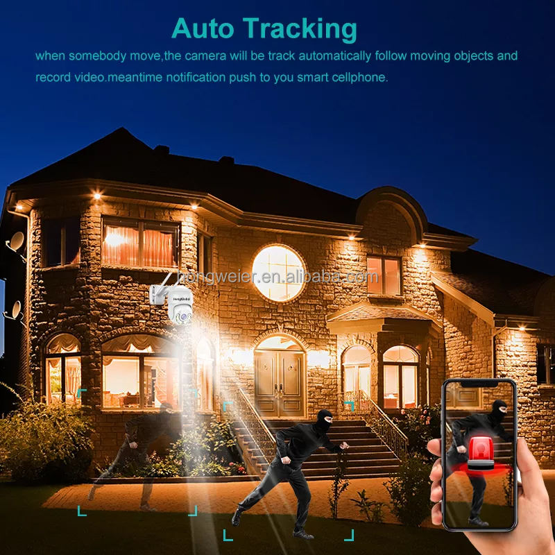 PAN-TILT, Built-in Sirène, Vision nocturne, Audio bidirectionnel, L'homme De Suivi De Mouvement, Détection de mouvement, Imperméabilisez/protégez contre les intempériesUsages spéciaux