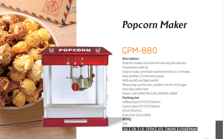 HongSound Machine à popcorn de haute qualité Machine à popcorn au gaz Machine à popcorn