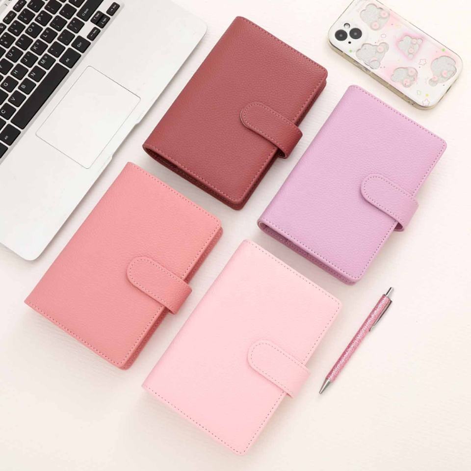 Carnet de budget Hongbo A6 en cuir grainé, 43 couleurs, 6 anneaux dorés, le plus vendu, idéal comme cadeau quotidien/hebdomadaire