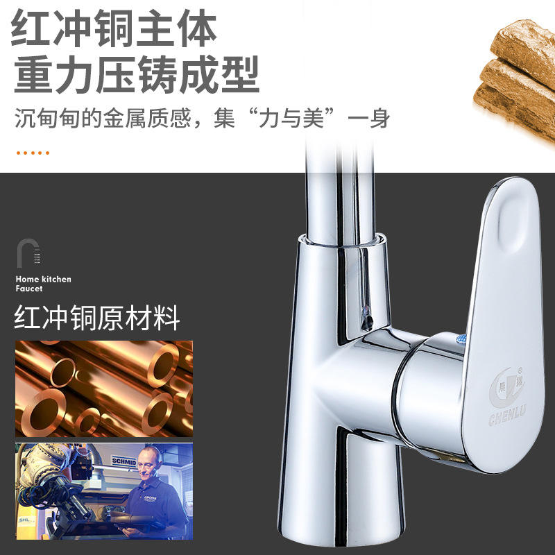 Robinet de cuisine en laiton Hongchong Goddess, monocommande, rotation à 360 degrés, valve en céramique, montage sur plan, style moderne