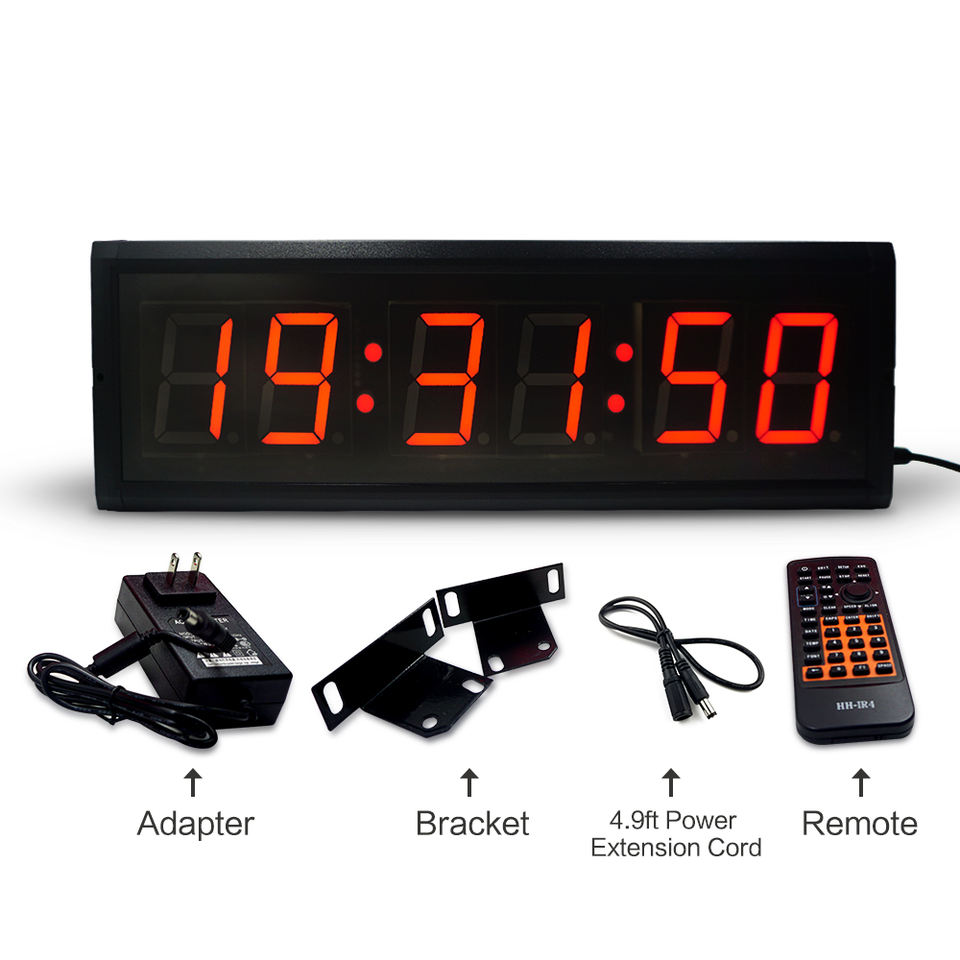 Honghao Mini minuterie de gymnastique LED rouge à 6 chiffres 4 pouces 12/24 système compte à rebours positif horloge murale chronomètre pour les sports d'entraînement croisés