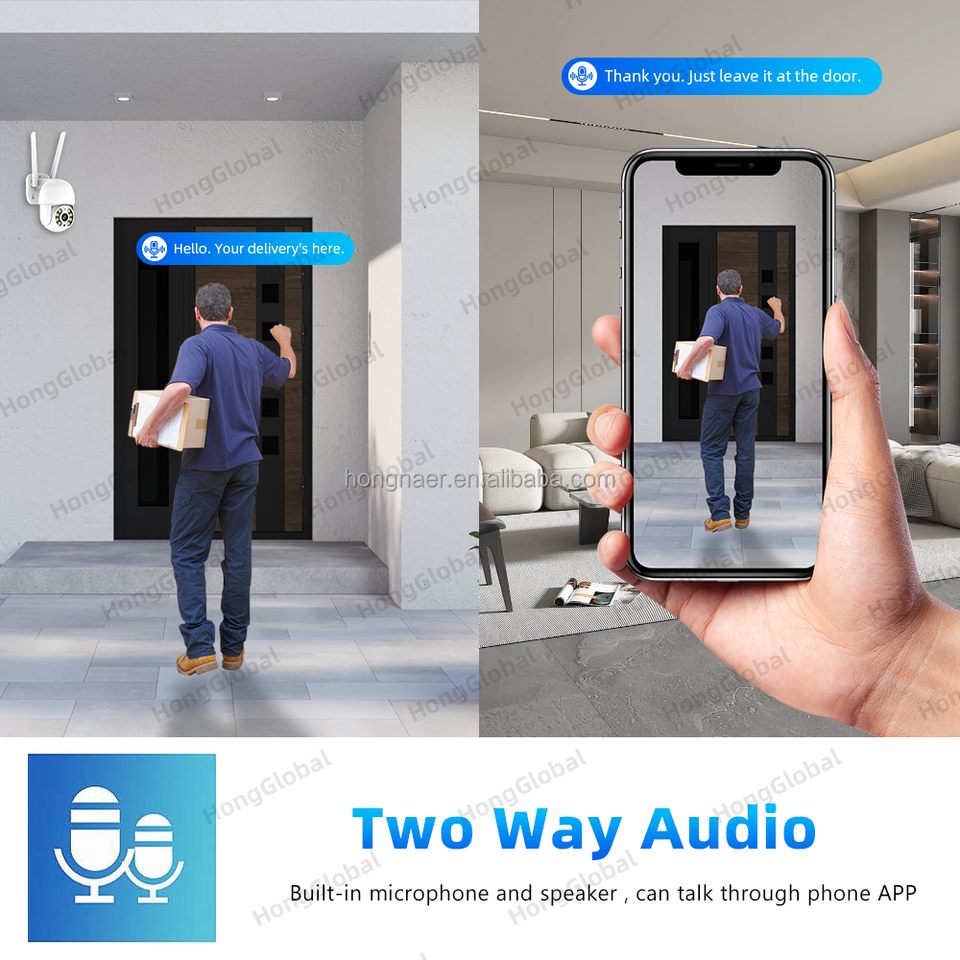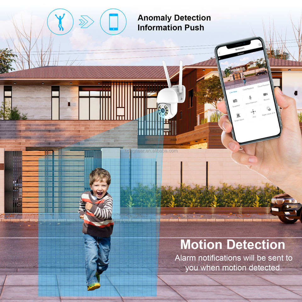 PAN-TILT, Built-in Sirène, Vision nocturne, Audio bidirectionnel, L'homme De Suivi De Mouvement, Détection de mouvement, Imperméabilisez/protégez contre les intempéries