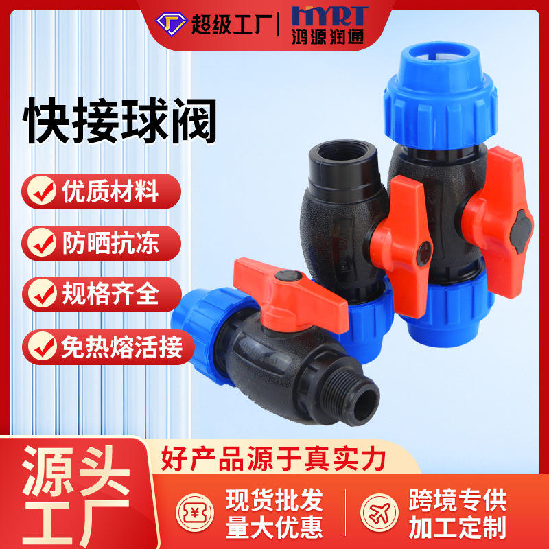 Vanne à boisseau sphérique à connexion rapide Hongyuan Runtong 1/2 po en PP pour raccord de tuyau d'irrigation goutte à goutte, couplage de contrôle d'eau de jardin
