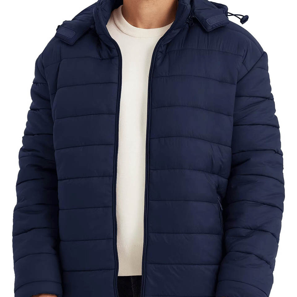 Veste matelassée à capuche et fermeture éclair sur le devant, style décontracté pour homme, veste légère pour homme, longueur standard, veste matelassée pour homme
